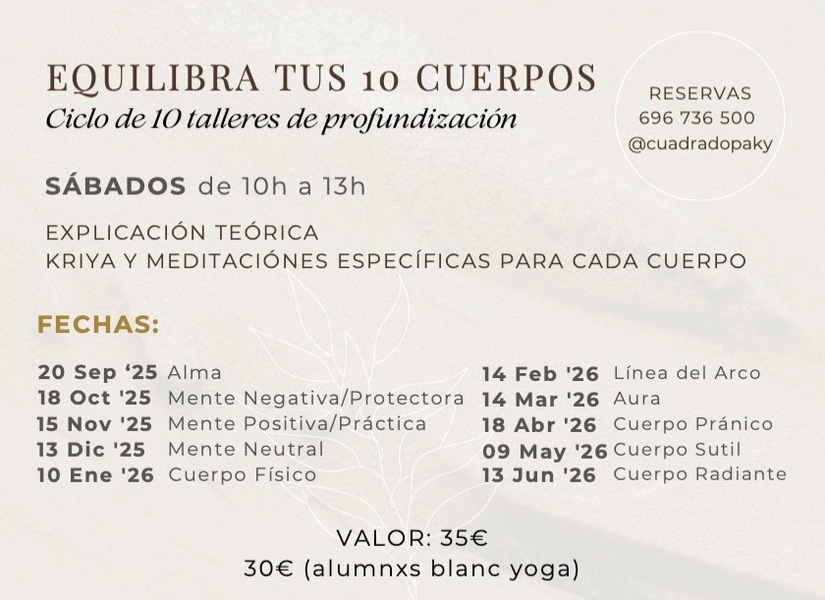 Explicación teórica, kriyas y meditaciones específicas para cada cuerpo